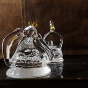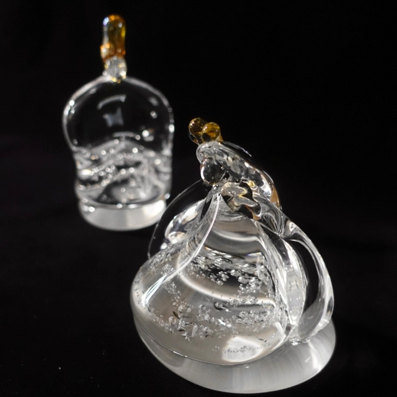溶けたガラスの持つ動きの美しい、透明なガラスのおひな様。
